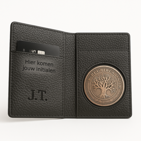 Onze Flagship kaarthouder van echt leer met naam of initialen